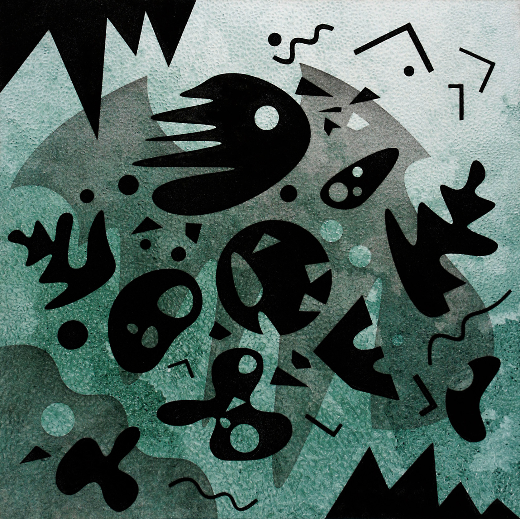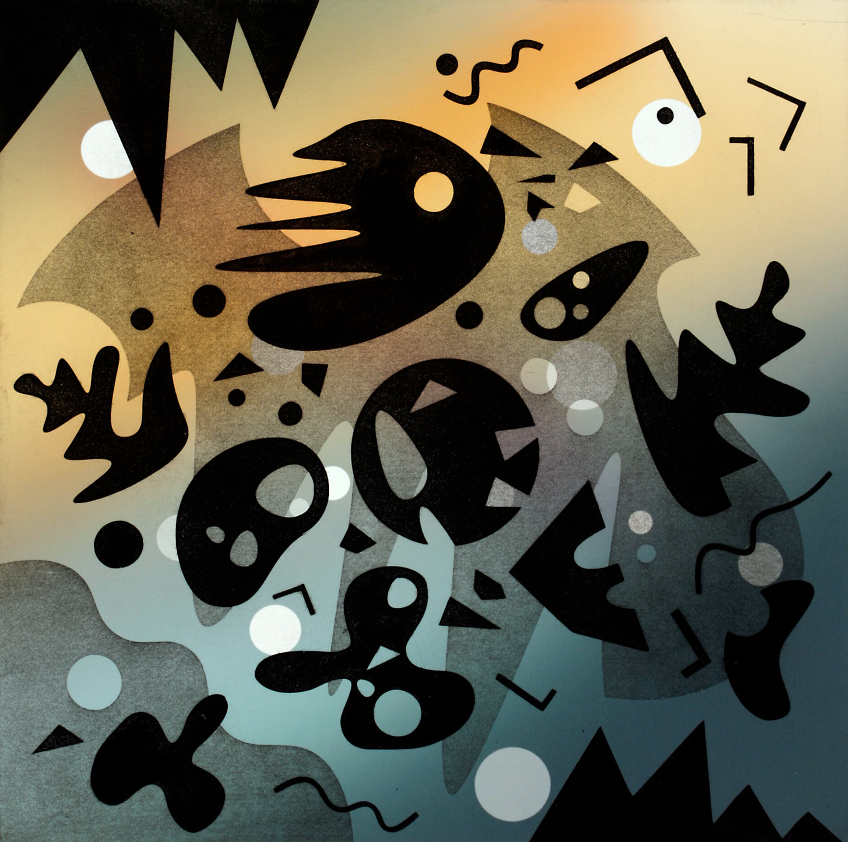Aquatint, digital chine collé, 9" x 9"